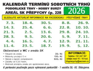 Kalendář sobotních trhů 2026 – zde